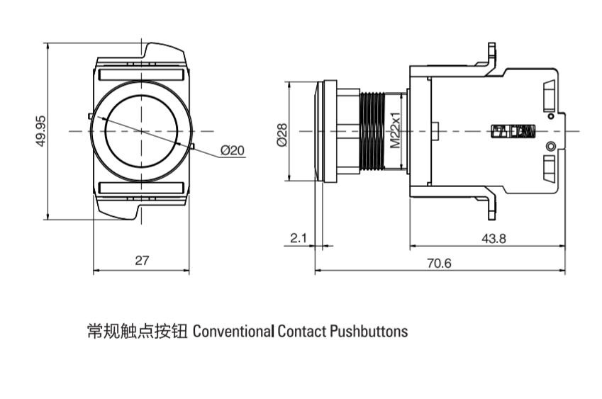 塑料按鈕開關 > 22MM > M22長基座